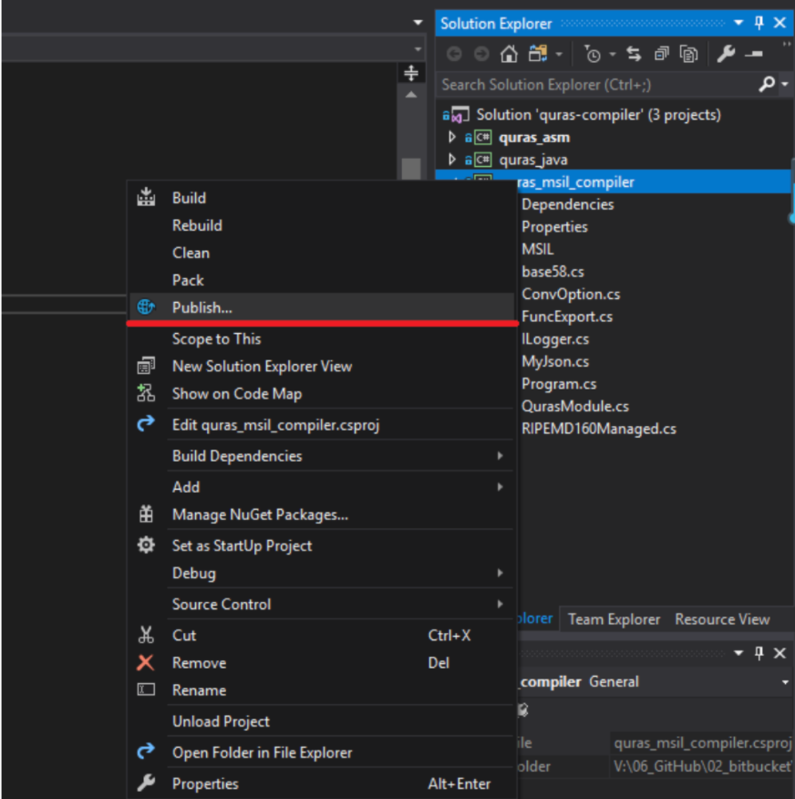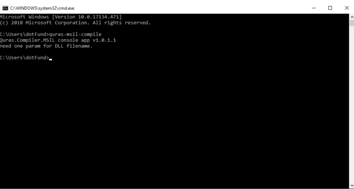 After you config the path, restart the cmd, when you enter “quras-msil-compile”, if you see this, it means you config it successfully. After configuring the compiler, the visual studio must be restarted.